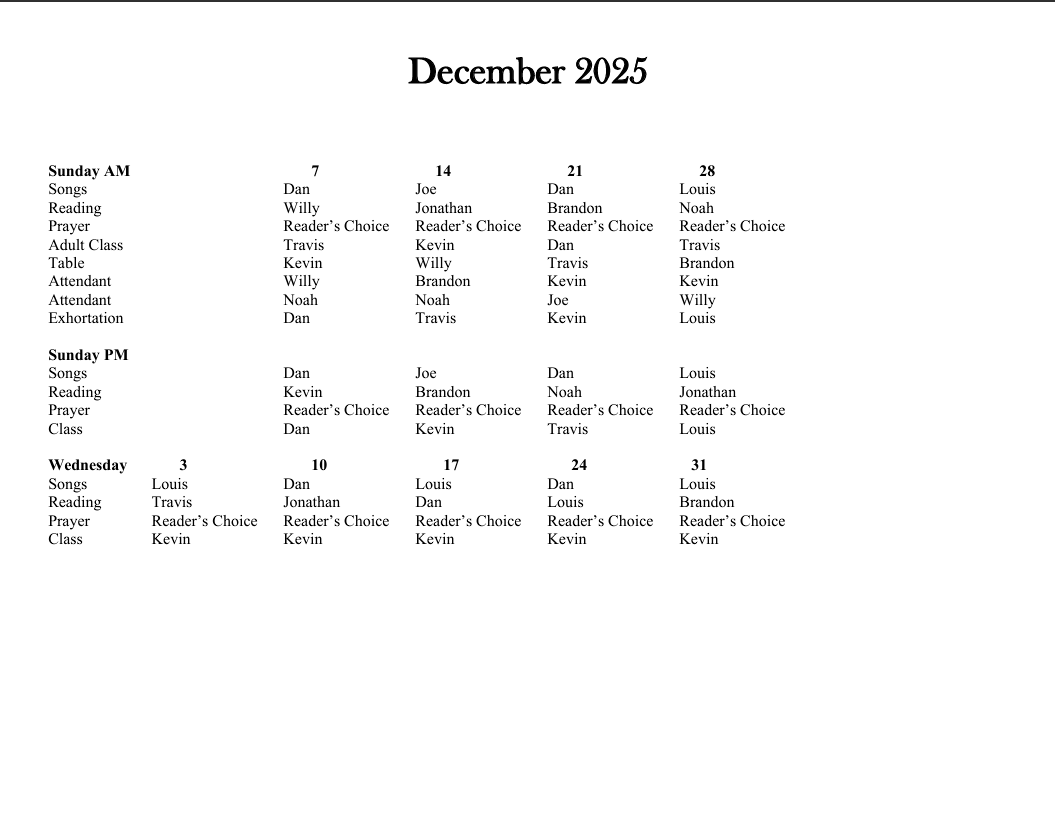monthly schedule December 2025 Share this: Click to share on X (Opens in new window) X Click to share on Facebook (Opens in new window) Facebook Like Loading...
